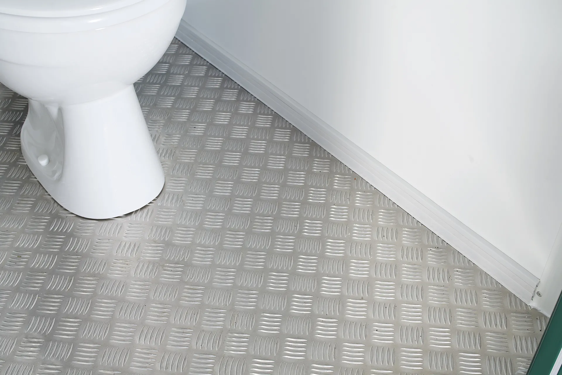 Inside, an aluminum-checked floor with a cement-bound chipboard base provides exceptional durability, making it suitable for high-traffic use. 1+1 Double Mains Toilet 8Ft x 5Ft (Green) - Wipe-Clean Walls: