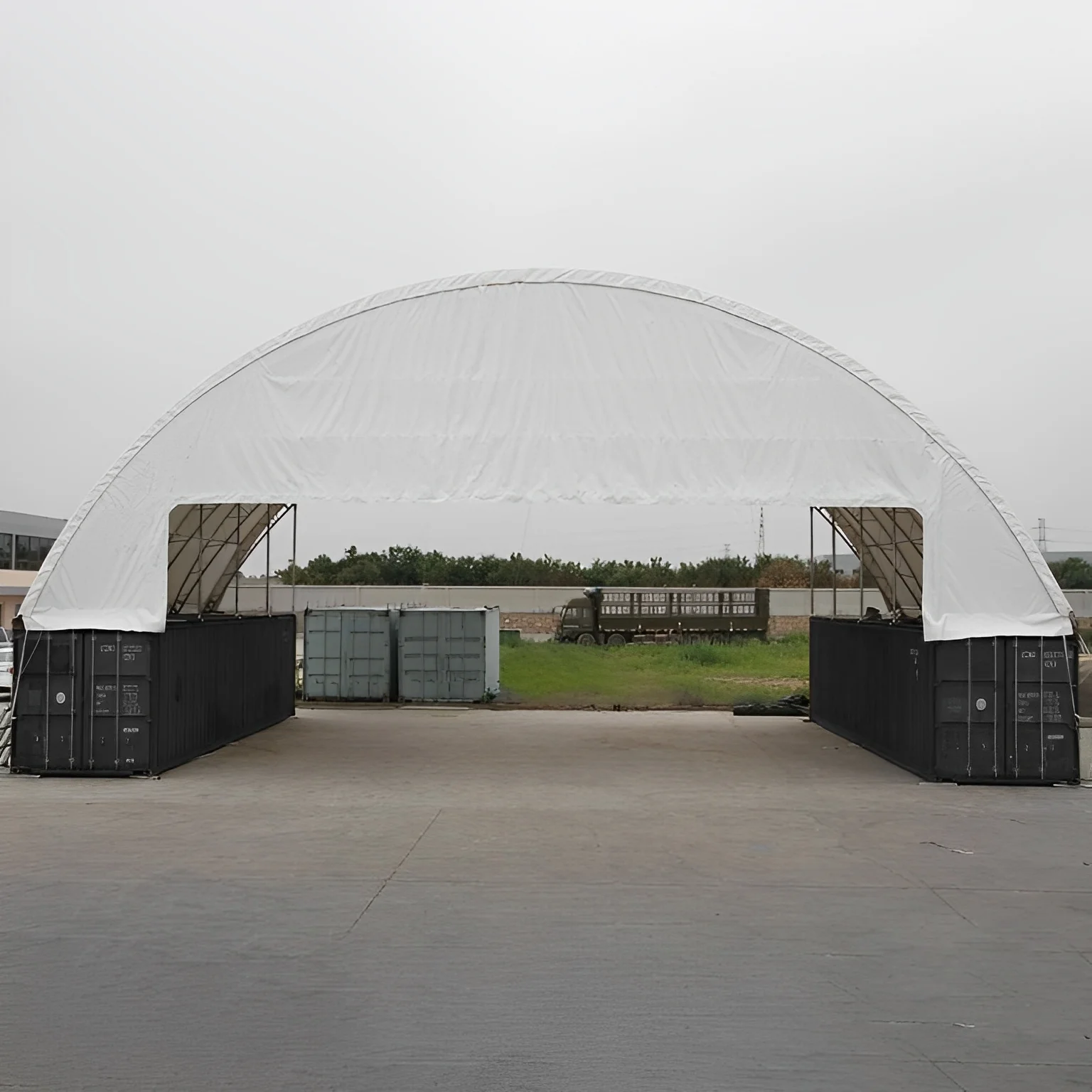 Designed for rapid deployment, the 26 x 20ft Container Shelter (8 x 6m) provides an instant weatherproof solution for workspaces, storage, and team break areas. Made to fit between two 20ft shipping containers, this robust shelter is ideal for commercial, industrial, and agricultural sites. Its heavy-duty construction and commercial-grade PVC fabric ensure long-term durability with minimal maintenance.