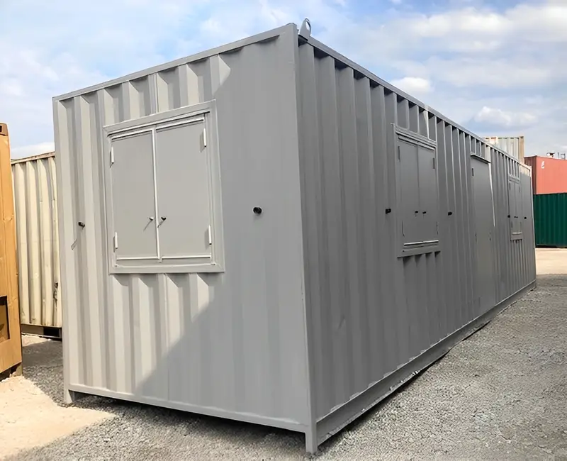 The 30ft Modi Box Office delivers the security of a steel structure, the comfort of an insulated interior, and the efficiency of a fully installed power system — all in a ready-to-use, relocatable format. Whether on-site for a day or several months, this unit offers dependable, compliant workspace without compromise.
