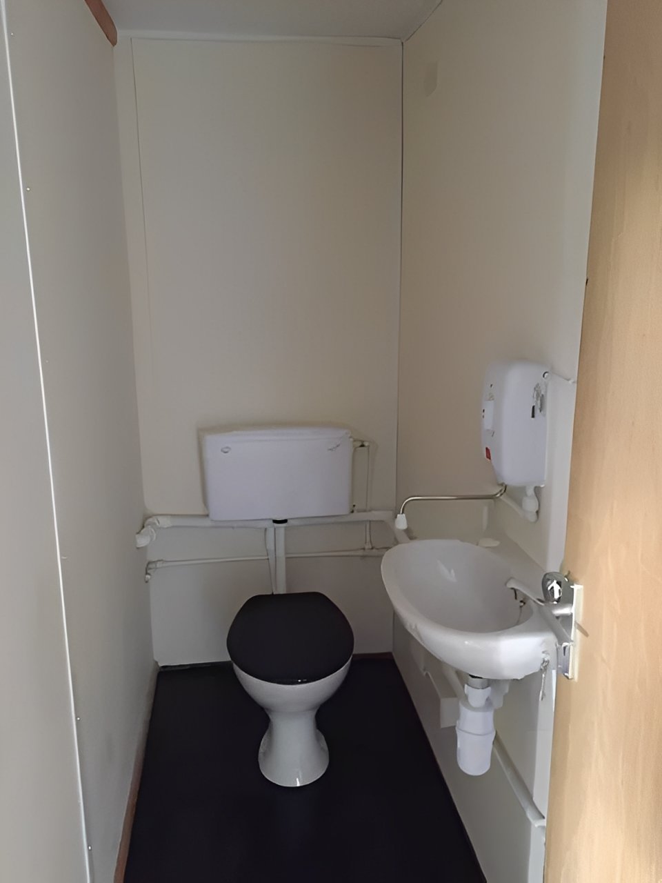 Restroom: Toilet and hand wash sink in a private enclosed area