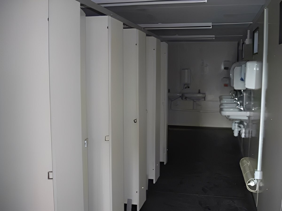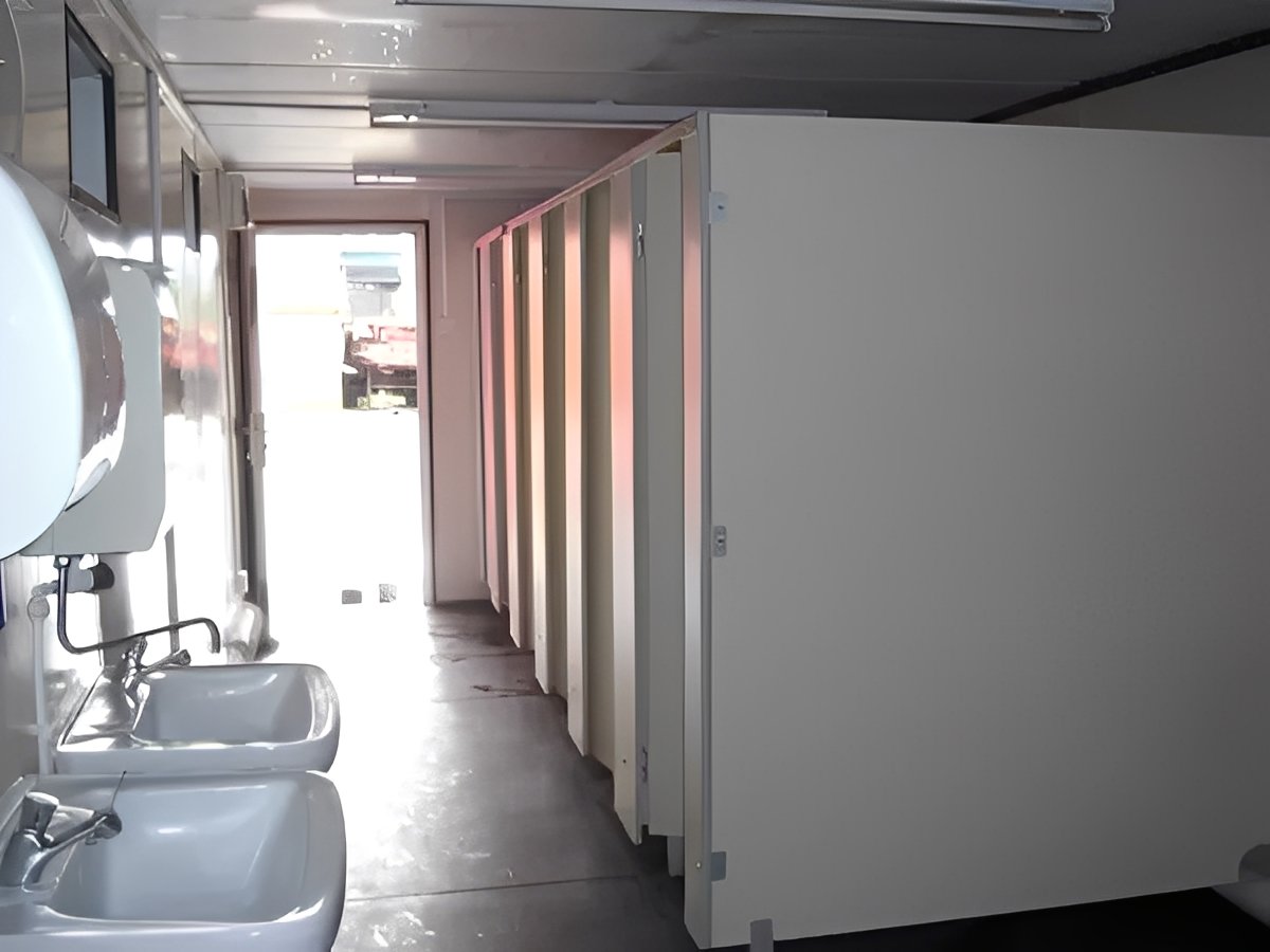 Upgrade your site facilities with this high-quality 6+1 Anti Vandal Jackleg Toilet Block, a secure and efficient sanitation solution built for high-traffic environments such as construction sites, outdoor events, industrial locations, and more. This pre-owned unit is in excellent condition and available for delivery across the United States. Designed for durability and ease of setup, this modular restroom block provides separate facilities for male and female users. The anti vandal steel structure ensures added security, while electric lighting and heating offer comfort in all weather conditions.